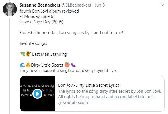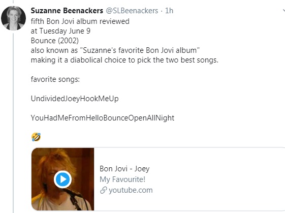 Next up album Crush (2000), then all the way back through the 90s, the 80s ending with 1984 Bon Jovi- Bon Jovi